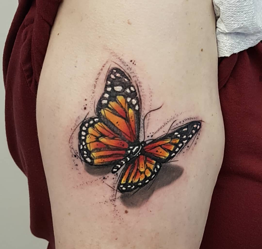 Emde Marek Donocik made this gorgeous sketch style butterfly. We love how he’s stuck to the classic colours of a common butterfly, but has added his own unique style into the tattoo.