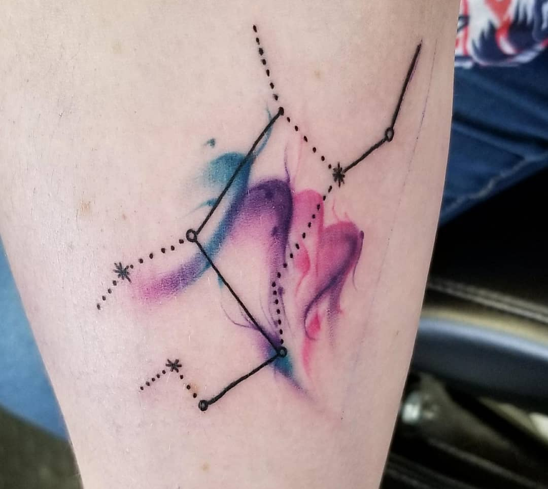 We’re loving this watercolour piece from @jalan85_. The colours are really pretty and it’s such an constellation tattoo.
