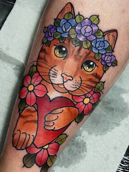 Today we're going to take a look at some of the cute kitty tattoos that she has created, so if you're a fan of colourful cats adorned with eye-catching accessories then make sure you check out these amazing 'cattoos' right here...They're purrfect!