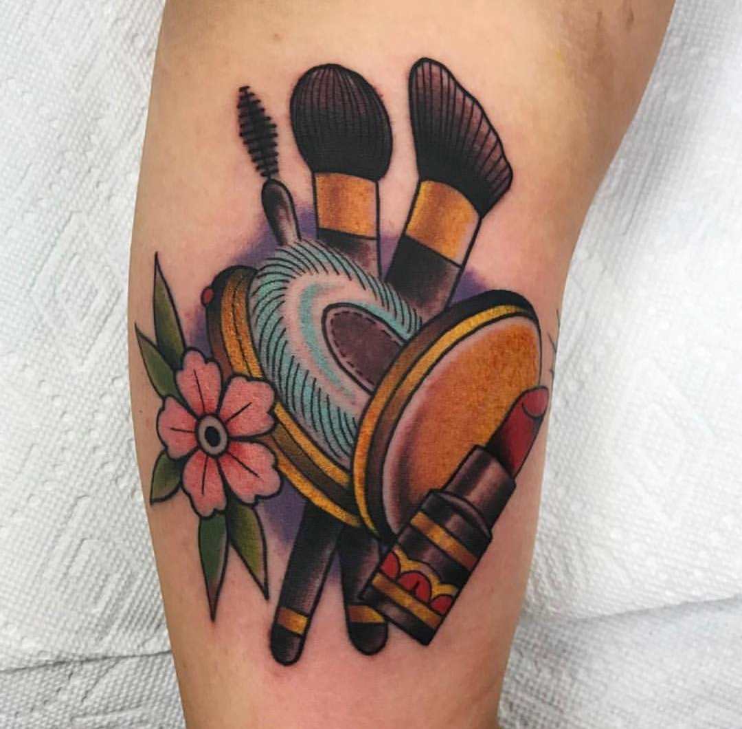 First up, a gorgeous makeup themed tattoo with some really beautiful colours.