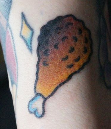 I love this chicken drumstick style piece from Marty Fletcher.  Another important message from his client portrayed on his chicken tribute tattoo!