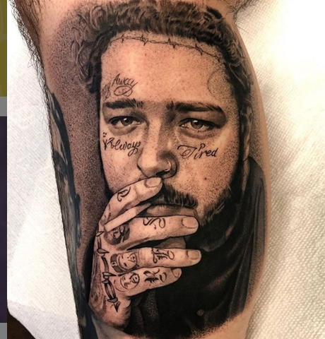 Due to his ever growing popularity it's not surprising to see droves of fans with Post Malone themed tattoos. Like their idol, they want to create some noticeable body art, and what a better way to pay homage to the tattooed singer, then to get a tattoo of the man himself.