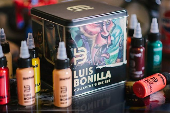 We’ve recently began stocking the Radiant Colors Luis Bonilla Ink Set, and we couldn’t be more excited about it! Radiant Colors have now released a few artist signature sets, including the Victor Portugal Set, the Carlox Angarita Set, the Laky Set, and the Angelo Nicolella Set, and now Luis Bonilla joins these talented artists with his own signature tin, which comprises of 16 bright and bold tattoo inks housed in a sleek decorative tin, along with a DipCap. We’re hailing this brilliant ink set as our ‘Product of the Month’.