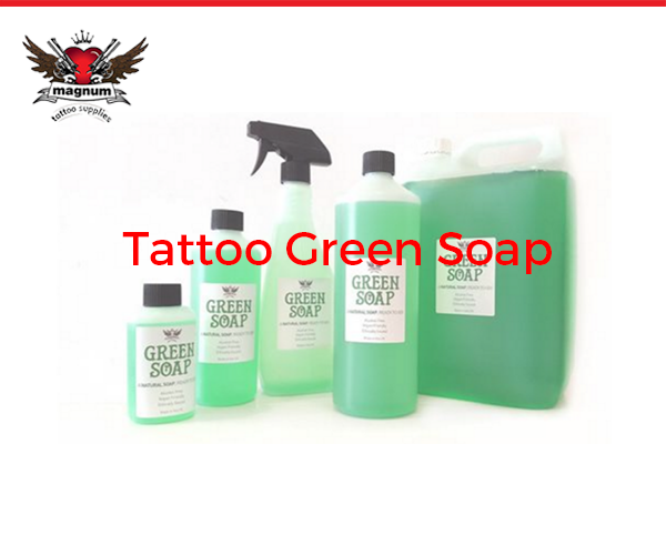 Green soap is free from dyes and has low alcohol content, the green soap also serves as a cleaning agent during a tattoo procedure. For the duration of your tattoo procedure, the tattoo artist will wipe the excess ink off the tattoo while performing the outline and shading. With this, the tattoo artist will be able to have a quick look to the next line in design and examine the previous lines or shading just in case additional ink is required. Once the tattoo is finished, the artist will clean excess ink, and blood using the green soap.