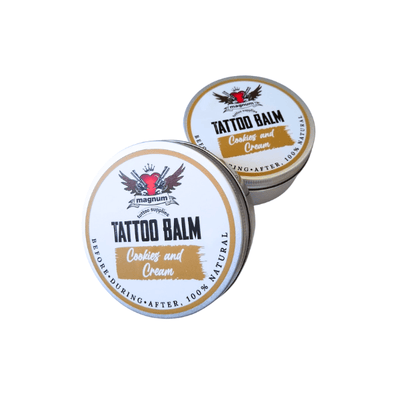Magnum Tattoo Balm is a multipurpose product designed to provide comprehensive tattoo care. Its rich, butter-like texture allows easy application before, during, and after tattooing and effectively moisturises and nourishes the skin.