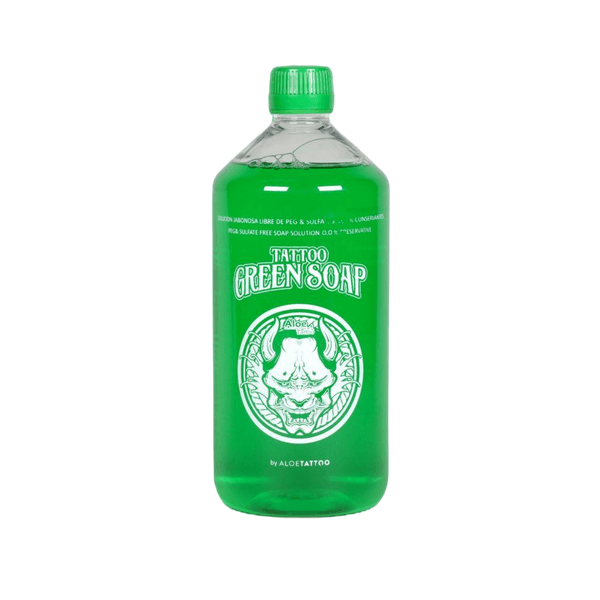 Aloe Tattoo Green Soap has a pH of 5.5. Kind to the skin, this soap effectively removes excess ink. It is very easy and convenient to use as it is used directly on the skin without diluting it. Contains allantoin and pure organic aloe vera extract with moisturizing properties.