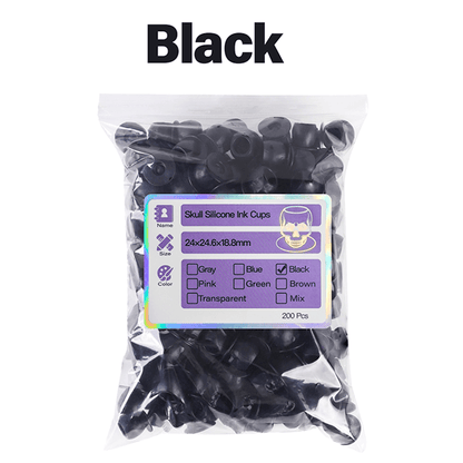 Add a bold touch to your workspace with these black skull-shaped silicone ink cups. Made from food-grade, non-toxic silicone, these cups are gentle on needle tips, reducing the risk of damage. The extra-wide base and suction cup bottom provide stability, ensuring they stay securely in place during use. Perfect for tattoo artists, these cups combine practicality with style, offering a unique alternative to traditional ink cups.