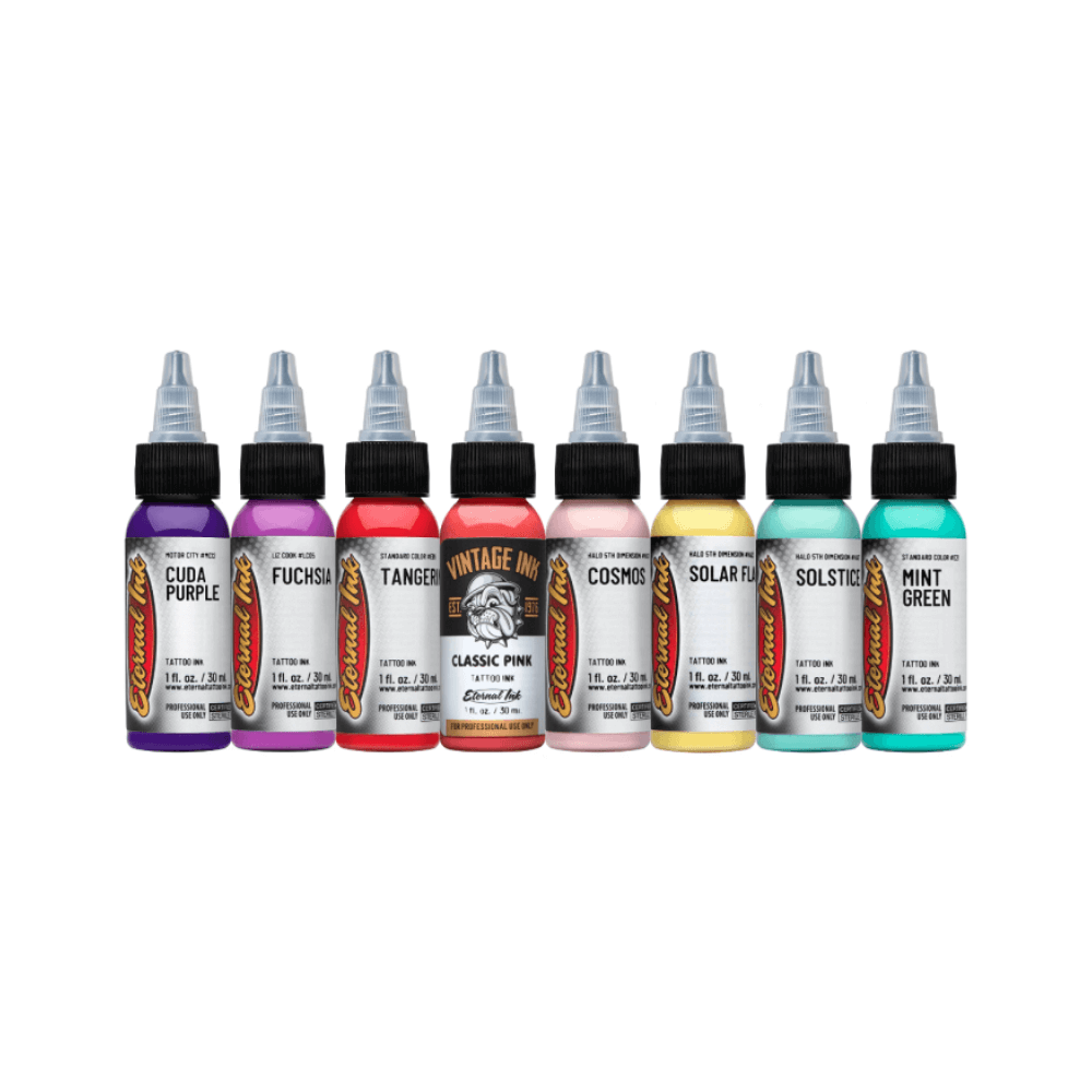 The Eternal Ink Anime Inspiration set by Russell Van Schaick is a bold 8-colour collection designed for artists who specialise in anime or anime-inspired tattoos.