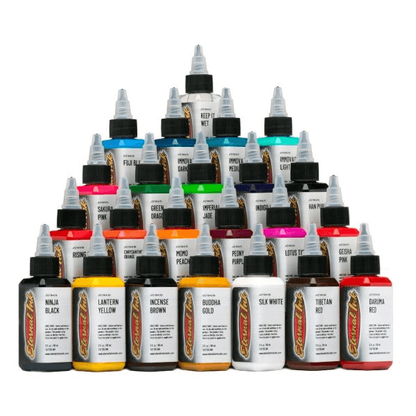Jess Yen’s tattoo art blends elements of realism and materialism into one fluid image. Eternal Ink worked with Master Yen to produce 22 stunning ink hues that capture the intensity and majesty of oriental tattoo art. Each color has been formulated for traditional and tebori tattoo styles. The Jess Yen ink set includes one bottle of Keep It Wet. All bottles are 2 oz.
