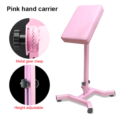 The pink armrest combines comfort, durability, and functionality, making it essential for tattoo artists and PMU technicians. With a thick cushioned pad and adjustable height, this armrest is built for ergonomic support. The 180-degree rotation locks at any angle, providing flexibility for detailed work. Its powder-coated steel frame ensures long-lasting stability.
