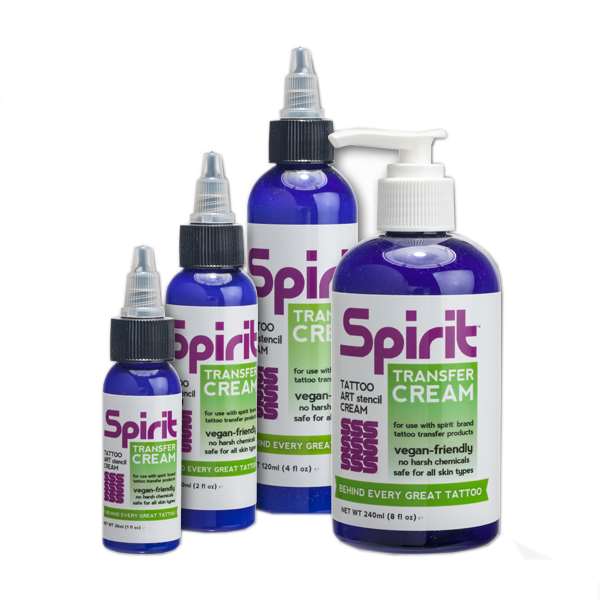 From the maker of reproFX Spirit Tattoo Transfer papers, Spirit Tattoo Transfer Cream is the only stencil transfer agent designed specifically to work with Spirit Tattoo Transfer Papers. Mild organic solvents transfer the stencil and a lipid buffer layer locks the dye pigment in place on top of the skin.