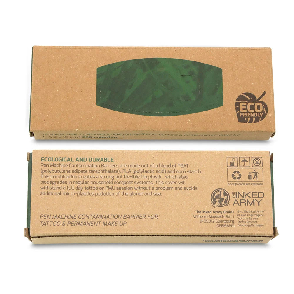 Made from biodegradable bioplastic (PLA), these sleeves use 65% less energy and produce 68% fewer greenhouse gases compared to traditional plastic alternatives. The packaging is also eco-friendly, made from recycled paper and completely plastic-free. Each pack includes 200 single-use sleeves, measuring 5.3 cm by 16 cm, providing reliable protection against cross-contamination while aligning with eco-conscious values. Ideal for tattoo artists and studios looking to prioritise both hygiene and sustainability.