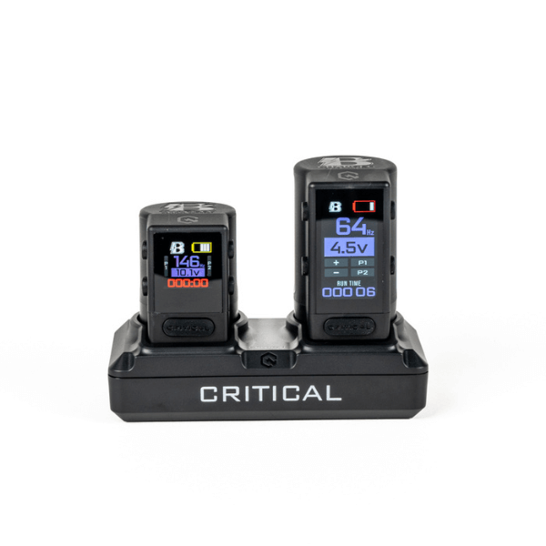 It comes with a Shorty battery that now runs up to 6 hours, while the Standard battery delivers up to 15 hours. Both feature a new TFT colour display with a 5-button layout that shows voltage, battery life, run time and Hertz read-out. Each Power Wand includes an upgraded steel ball bearing Snap Connector for an extra secure connection with Bishop x Critical battery packs or the included RCA adapter.