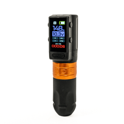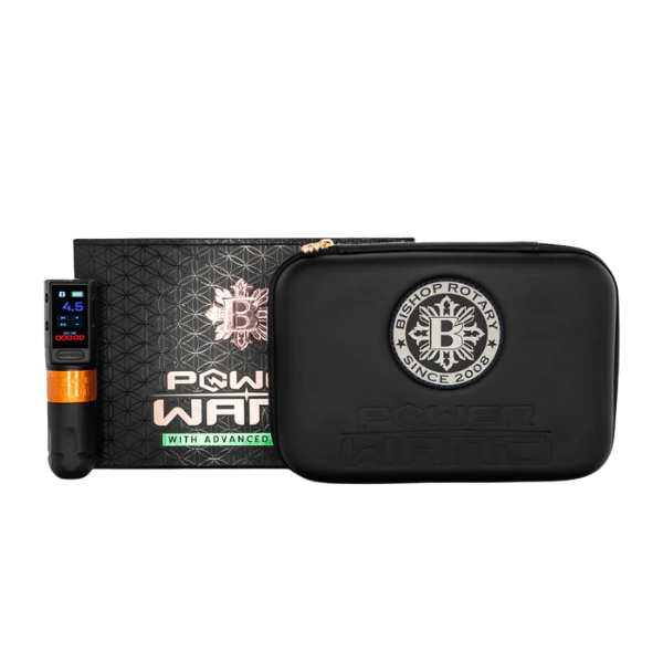 The Bishop Power Wand with Advanced Battery full set is for tattoo artists who want full wireless control without sacrificing performance. It includes everything needed to work wirelessly for hours, with two upgraded batteries, a full charging setup, and your choice of Shader (3.5mm), Packer (4.2mm), or Liner (5.0mm) versions of the Power Wand machine.
