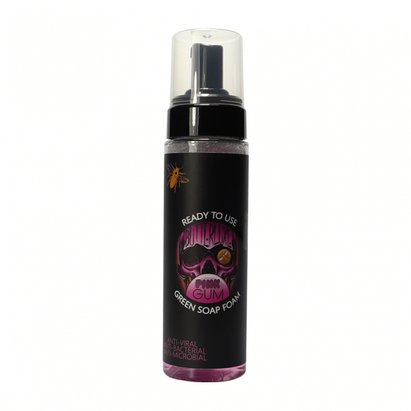 Butterluxe Ready To Use Green Soap Foam is enriched with aloe vera extract and organic essential oils designed to soothe and calm the skin. Packed with anti-bacterial and anti-inflammatory properties. Effectively removes excess ink whilst soothing the affected area. Contains Chlorhexidine, one of the worlds most effective disinfectants.