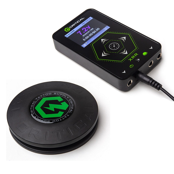 This footswitch gives better response with one central switch vs multiple springs. It is supplied with 2 x AAA batteries which are guaranteed to last 3 years of daily tattooing. It can also be ran with any standard clipcord and is compatible with all past and future Critical power supplies.