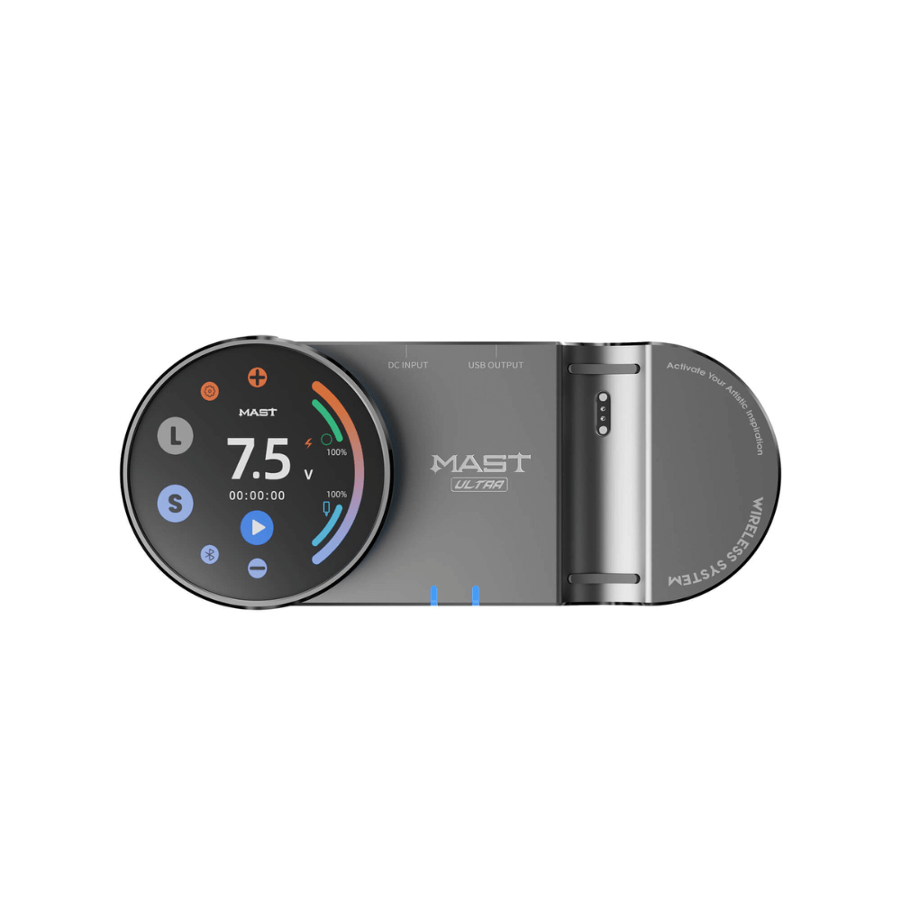 The Mast Archer Ultra integrates seamlessly with the Dragonhawk app and Mshield touchscreen panel, offering wireless control, Bluetooth connectivity, and precise 0.1V voltage adjustments via swipe or tap. With its auto-alignment design and compatibility with all universal Cheyenne-type cartridges, this machine is designed to streamline your workflow and ensure straightforward sessions.