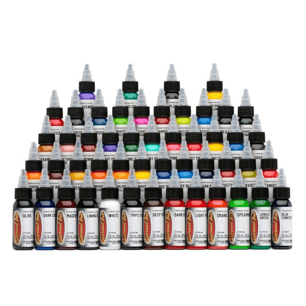 The eternal ink silver set is a collection of 50 of the most popular and attractive colours within the entire Eternal Inks range of colours, provided in 1oz bottles bottles, to offer you everything you might need for all of your tattoo designs. There are of course all high quality inks, offering the same excellent quality, long lasting colour that all eternal inks provide, as well as being non-toxic and organic options for ink. To further ensure the quality of the collection we sterilize all of the inks within this set, and we never freeze them, so you can be certain that all of the inks are clean and fresh.