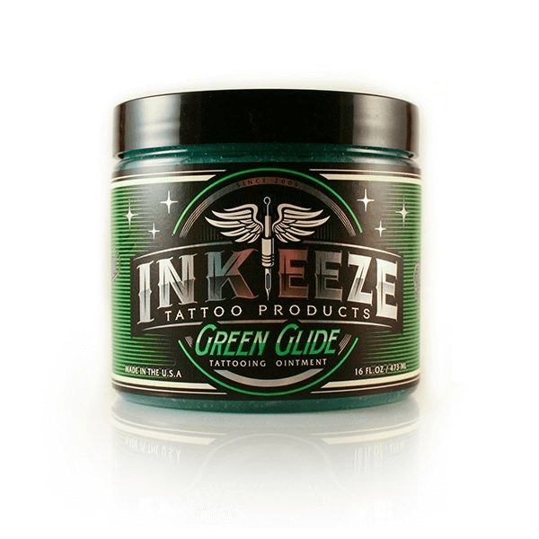 It is formulated with lavender, licorice, green tea and pomegranate extract. It can be used during tattooing as a glide, and also to help soothe the skin and create a moisture barrier.
