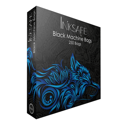 A box of 250 Inksafe Black Machine Bags to keep your tattoo machine safe from ink, soap and debris during a session. At 30 microns thick these machine bags provide a durable option for those looking for tattoo machine protection.