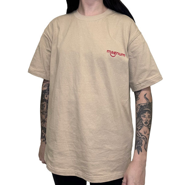 The Magnum logo T-shirt comes in an oversized, relaxed fit and is made from high-quality materials in a soft ivory shade, making it a versatile choice for everyday wear. Whether you're at the studio, a tattoo convention, or out and about, this T-shirt offers comfort and durability.
