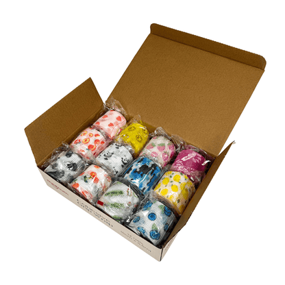 Includes the following designs: Avocados, Blueberries, Cherries, Cow Print, Lemons, Ocean Camo, Pandas, Peaches, Hearts, Pink Paw Prints, Strawberries, Smiley Faces. (Designs may vary depending on stock levels.)