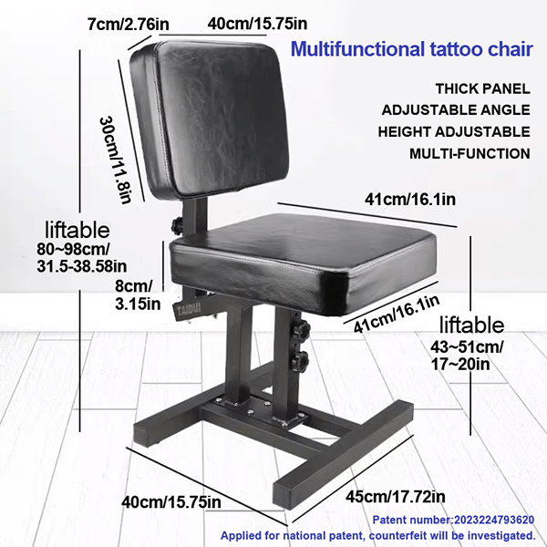 The thickened steel frame and screw-fastened base provide excellent stability, ensuring your chair stays secure during long tattoo sessions. Easy to assemble and disassemble, this chair is a practical and long-lasting addition to any tattoo studio.