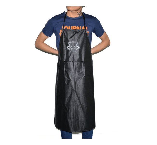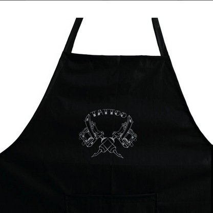 A Black Nylon Waterproof Tattoo Apron. This apron comes with a handy front pocket and can be re-used, making this a more environmentally friendly choice than the disposable aprons currently on the market.