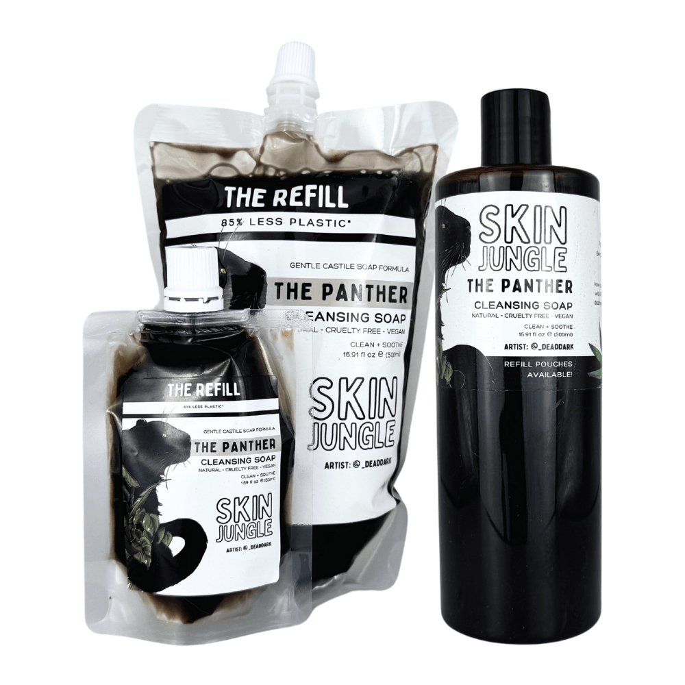 A rich, woody blend of tobacco and sweet vanilla gives this gentle castile soap from Skin Jungle its signature scent. Made with natural ingredients, The Panther soap is designed to clean without stripping or irritating – perfect for use during tattoo sessions or as part of your aftercare routine.