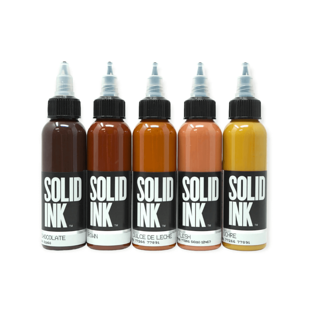 The Solid Ink Brown set brings together five essential browns, spanning from soft, earthy ochres to rich, deep chocolate tones. Each colour stands strong on its own but also mixes beautifully with the rest of the set, giving you full control over warmth, depth, and contrast in your work.