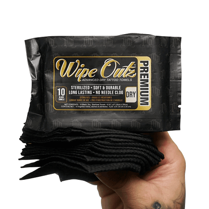 Enhance your clients' comfort with Wipe Outz OG dry tattoo towels, ensuring a superior experience. These towels are not only sterilized and durable, but also boast a remarkable softness surpassing traditional paper towels, preventing skin irritation for optimal tattoo healing.